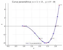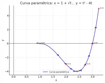Esboce a curva usando as equações paramétricas para marcar os pontos. Indique com uma seta a direção na qual a curva é traçada quando aumenta.