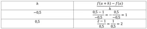 Fazendo a média desses valores, que no caso é a média das derivadas antes e depois do ponto onde , podemos ver a tendência de quando se aproxima de :
