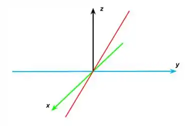 Nesse caso ambas as equações representam um plano a primeira um pano que corta o eixo y e a segunda um plano que corta o eixo x, sendo a intersecção entre os dois planos a resposta do exercício, outra forma de ver é que essa intersecção é representada pela equação , pois ambos são iguais a z.