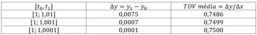 Temos que fazer uma tabela de taxa média de variação igual à anterior para um intervalo mais curto