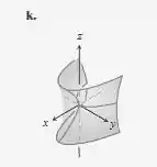 As seções do parabolóide hiperbólico na parte (l) com planos paralelos ao plano ou ao plano são parábolas enquanto as seções com planos paralelos ao plano são hipérboles. As seções do parabolóide hiperbólico na parte (k) com planos paralelos ao plano ou ao plano são parábolas enquanto as seções com planos paralelos ao plano são hipérboles.