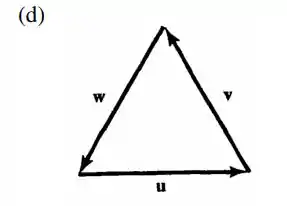 Como os vetores possuem comprimentos iguais, e angulações que permitem a construção de um triângulo equilátero ao escrevermos o vetor u + v + w, teremos como resultado um vetor nulo, e nesse caso nenhuma representação geométrica, ou seja: