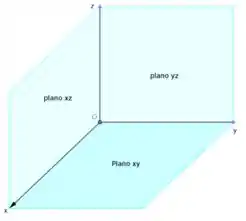 O plano contém os eixos e , o plano contém os eixos e e o plano contém os eixos e