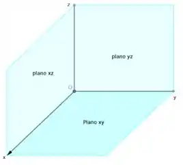 O plano contém os eixos e , o plano contém os eixos e e o plano contém os eixos e