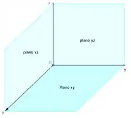 O plano contém os eixos e , o plano contém os eixos e e o plano contém os eixos e