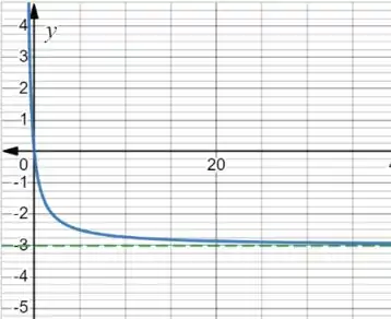 A diferença é que ao invés de pensarmos em valores grandes positivos, a gente pensa em valores grandes negativos, como . Teremos um gráfico com essa carinha aqui: