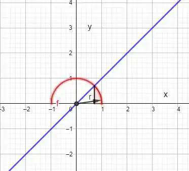 Galera, a nossa tarefa agora é determinar o intervalo onde o raio que gera esta região se situa. Como e chamando o raio menor que descreve a curva preta de , isto implica que . Continuando teremos,