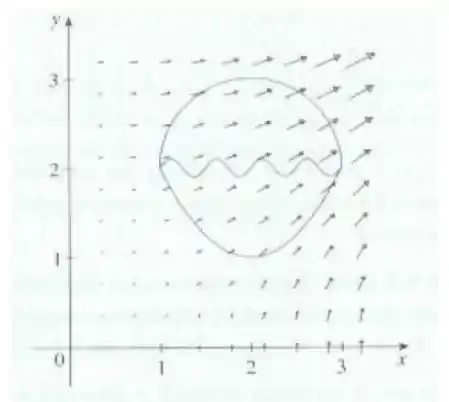 A figura abaixo mostra o campo vetorial e três curvas que começam em e terminam em .