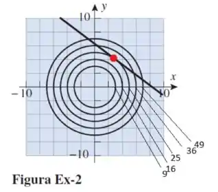 (b) Como podemos dizer, a partir da figura, que a resposta em (a) não é o valor mínimo de sujeita à restrição? 49 36 25 16 9