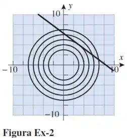 (a) Use a figura para encontrar o valor mínimo da função sujeita à restrição e explique seu raciocínio.