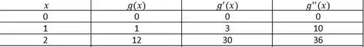 Uma função e suas derivadas das duas primeiras ordens foram tabuladas como se indica a seguir. Sendo construir uma tabela para e suas derivadas das duas primeiras ordens, para