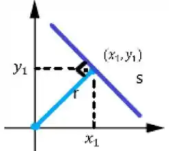 Para resolvermos essa questão, vamos utilizar a ideia base de retas. Olha só, a imagem abaixo demonstra exatamente o problema da questão, temos uma reta (r: azul claro) que sai da origem do plano cartesiano e passa pelo ponto P(x,y), nesse ponto P há uma reta perpendicular (s: azul escuro).