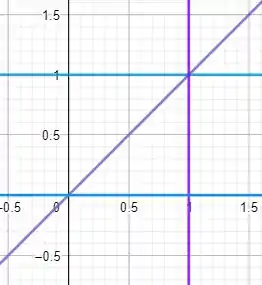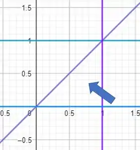 Nossa região é a interseção entre as retas. Opa! Ficou confuso. Qual é a parte. De cima ou de baixo? Temos que lembrar que lemos x da esquerda para a direita. E y de cima para baixo. Assim x começa na reta e termina na reta . Com isso podemos afirmar que nossa região é