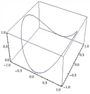 Bom, pessoal... Para provar que a curva é de fato a intersecção das duas superfícies, vamos tentar chegar nas equações das duas superfícies a partir das equações paramétricas da curva.