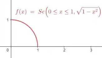 O gráfico de é a porção do círculo e , ou seja, um quarto do círculo no primeiro quadrante.