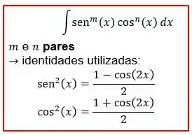 Repare no seguinte: temos potências envolvendo seno e/ou cosseno, com ambas sendo par.