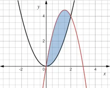 Pra determinar os intervalos de integração vamos calcular as intersecções entre as curvas, que são os pontos onde elas se cruzam. Então, vamos igualar as duas funções:
