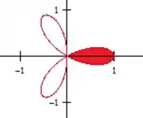 A questão pede para calcularmos a área de uma região usando uma integral dupla, no nosso caso, um laço de rosácea com