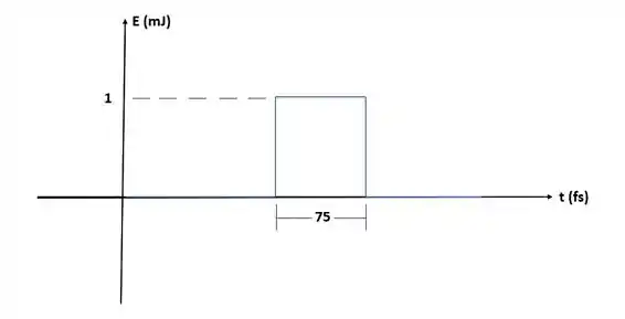 An amplified titanium:sapphire laser generates 1mJ laser pulses 75 fs in duration
