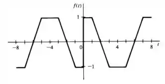 Nessa questão ele pede para calcular a série trigonométrica de Fourier para a função , um período da qual está indicado.
