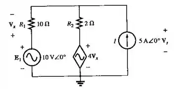 Neste exercício, usaremos o teorema da superposição. Vale reforçar que o teorema não se aplica a fontes dependentes controladas por uma variável determinada pelo circuito, como o caso da fonte de tensão .