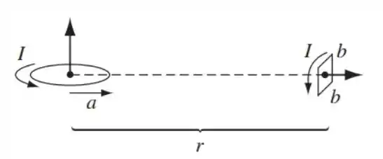 Calcule o torque exercido na espira quadrada mostrada na Fig. 6.6, devido à espira circular (suponha que r seja muito maior que a ou b). Se a espira quadrada estiver livre para girar, qual será sua orientação de equilíbrio?