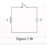 Um capacitor C é carregado até um potencial V e ligado a um indutor L, como mostra esquematicamente Figura 7.38. No tempo t=0 a chave S é fechada. Encontre a corrente no circuito, como função de tempo. Como a sua resposta se altera se um resistor R for incluído em série com C e L?