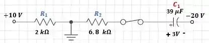 O capacitor da Figura 10.100 está carregado inicialmente com 3V, com polaridade mostrada na figura.