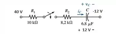 a) Como primeiro passo nesse item, devemos prestar atenção ao fato de o capacitor estar inicialmente carregado, logo, a expressão para tem que levar em consideração .