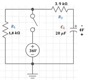 Assim podemos escrever as equações e , lembrando que o capacitor já estava carregado. Desta forma, temos: