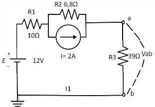 Vab = I1R3 = (458.78 mA)(39Ω) = 17.89 V