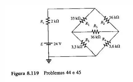 - Pela equação (4), a corrente através do , seu valor da resistência é de .