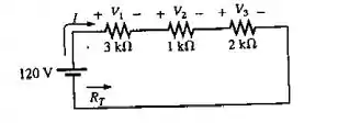 - Determine o valor da resistência total, da corrente e os valores desconhecidos das quedas de tensões.