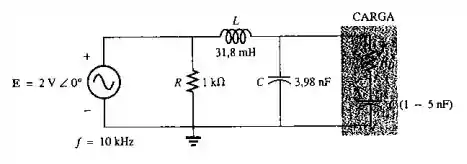 a. Para o circuito visto na Figura 18.132, calcule o valor da capacitância que garante uma potência máxima na carga se a capacitância está limitada à faixa de 1nF à 5nF.