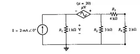Vimos no passo 2 que é a tensão sobre a impedância e que a corrente da fonte se divide entre e os demais componentes do circuito. Isto é: