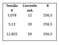 Sabemos que a relação entre a tensão e a corrente nos resultará no valor que chamaremos de x, dado a equação abaixo: