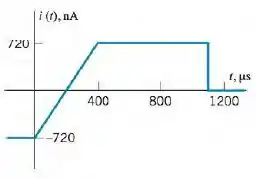A corrente em um componente de um circuito está plotada em função do tempo na figura P 1.3-6. Determine a carga total que atravessa o componente entre 300 e 1200 µs.