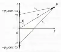 Em geral (ou seja, para pontos que não estão no plano ) ; além disso, na zona de radiação não estamos interessados em termos que vão como , então