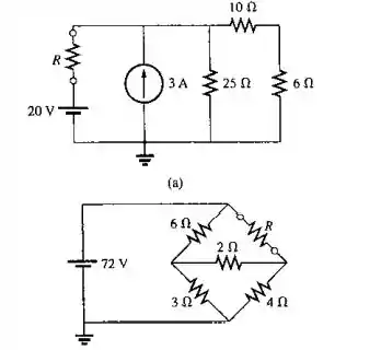 Desenhe o circuito equivalente de Thévenin para o circuito externo ao resistor R em cada um dos circuitos vistos na Figura 9.130