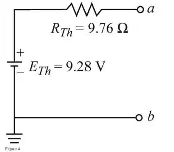 Desenhando o circuito equivalente de Thévenin (Figura 4).