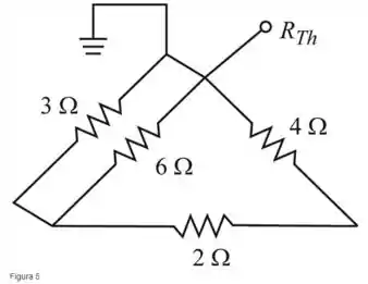 Encontraremos a resistência equivalente de Thévenin da rede