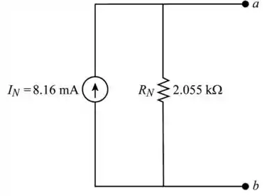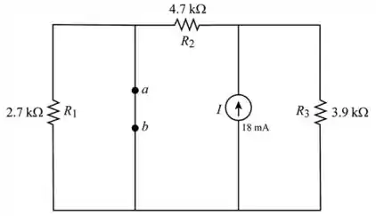 - Abra a fonte de corrente do circuito e mantenha os terminais a e b abertos para encontrar o valor da resistência de Norton
