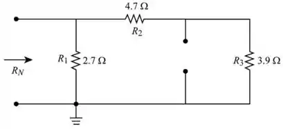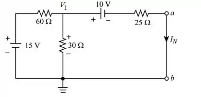 - Curto circuite as fontes de tensão de 15 V e 10 V e mantenha os terminais a e b abertos para encontrar o valor do resistor de Norton