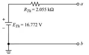 Assim, o circuito equivalente de Thévenin é desenhado e o valor é o mesmo quando comparado ao converter do equivalente de Norton.