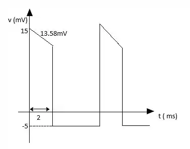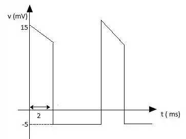 Desenhe a forma de onda de um pulso positivo com um nível de referência de -5 mV, uma largura de pulso de 2µs, uma amplitude de 15mV, uma inclinação de 10%, um período de 10 µs e bordas verticais.