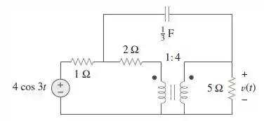 Primeiramente, vamos transformar os elementos do circuito que estão no domínio do tempo para o domínio da frequência: