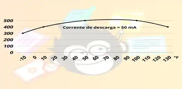 O enunciado pede pare relacionarmos quantos mAh (eixo Y) correspondem em °F (eixo X) para uma bateria de 50 mA