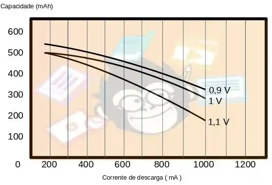 Determine a capacidade em mAh de uma bateria Eveready®, modelo BH 500 de 1,0 V, se a corrente drenada da bateria for de 550 mA. Para isso use a Figura 2.18(a).