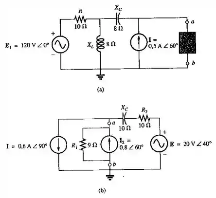 Determine o circuito equivalente de Thévenin para as partes dos circuitos vistos na Figura 18.122 externas aos elementos entre os pontos a e b.