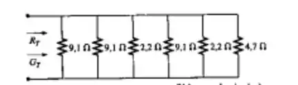 Determine a condutância e a resistência totais para o circuito mostrado abaixo.